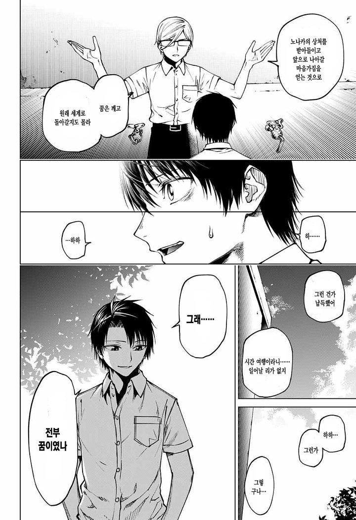 소중한 것은 잃어버린 후에야 깨닫는 법이다. 난 아직 세상 그 무엇보다도 소중하다고 여긴 사람을 떠나보낸 적도, 누군가를 열렬히 갈망한 적도 없기에 주인공의 심정을 감히 헤어릴 순 없지만, '다시 만나고 싶다.' '과거를 되돌려 그 사람을 구하고 싶다.'라는 마음은 비상식을 넘어 시공을 초월할만큼의 힘을 가진 게 아닐까 싶다.