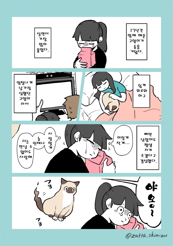<고양이 칠하는 가게>와 <고양이가 된 회사원> 시리즈를 그린 zatta shimizu 님의 고양이 단편 만화.