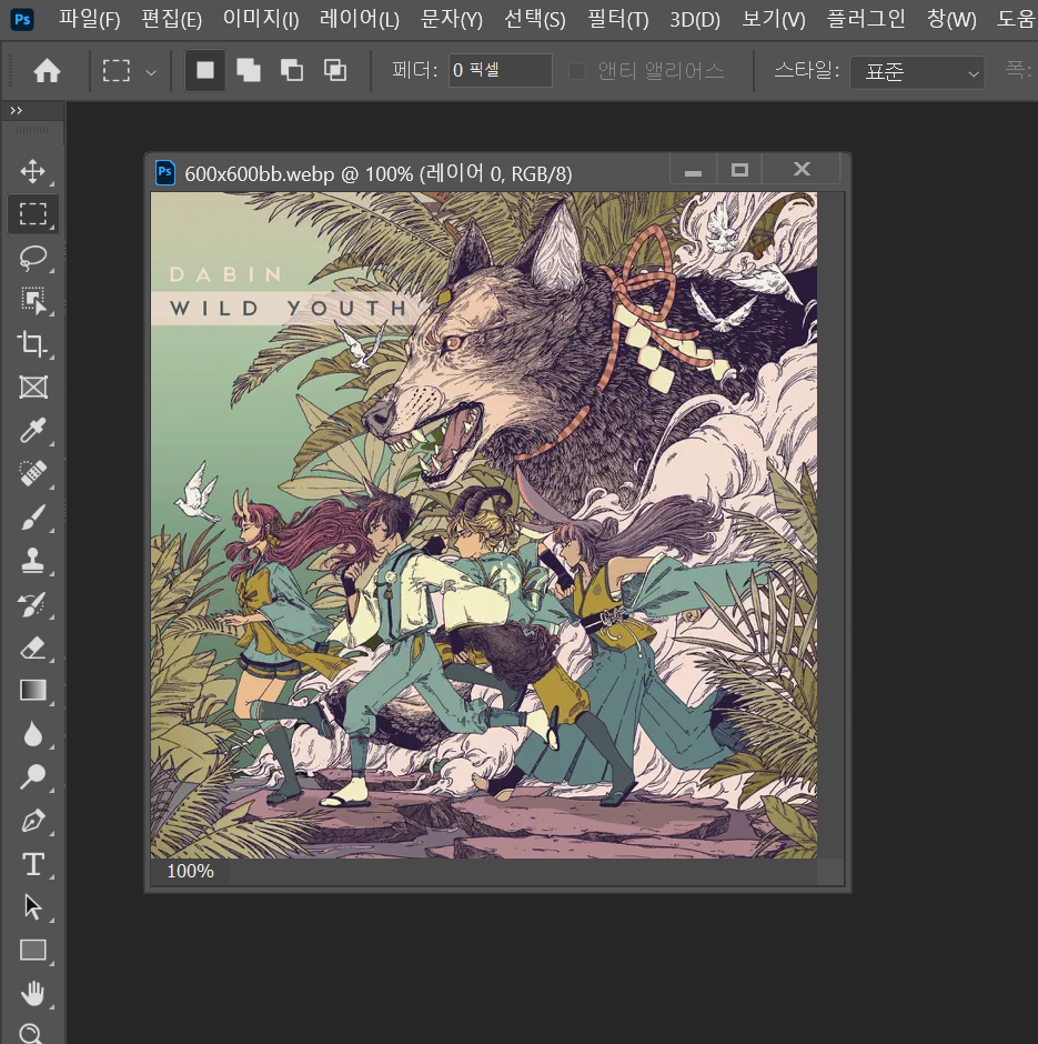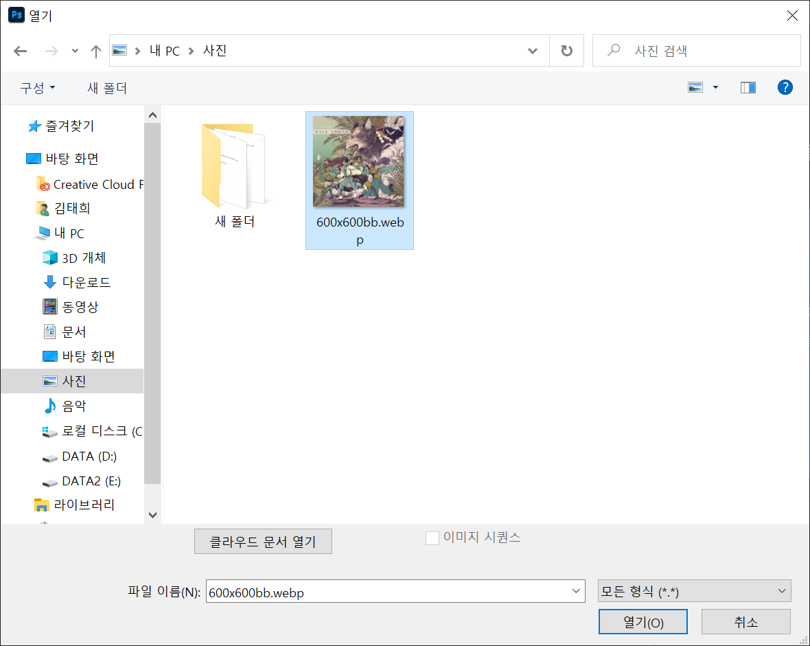 3. 포토샵을 실행하고 webp 확장자 이미지 파일을 선택하여 연다.
